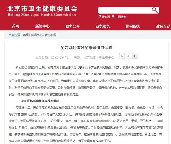 據北京市衛健委網站消息,13日,北京市紅十字血液中心介紹,新冠肺炎疫情發生以來,血液工作面臨供應和安全兩個方面的嚴峻挑戰,為確保臨床采供血安全,北京疫情防控工作領導小組在統籌全市抗擊疫情的同時,對于無償獻血工作專題研究部署,確保采供血安全,確保新冠肺炎確診病例和急危重癥患者救治用血。1月份至今,全市共有1266家企事業單位和高校,4.1萬名黨員、干部、職工和學生,捐獻熱血5.1萬單位,占血液采集供應總量的26.3%,使北京市平穩渡過了血液供應最困難的時期。