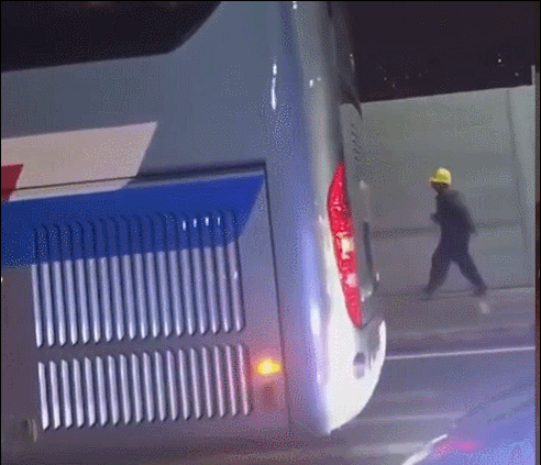 一位下班的工地工人,不知道得到了什么好消息,一蹦一跳地回家,開心地像個(gè)孩子。