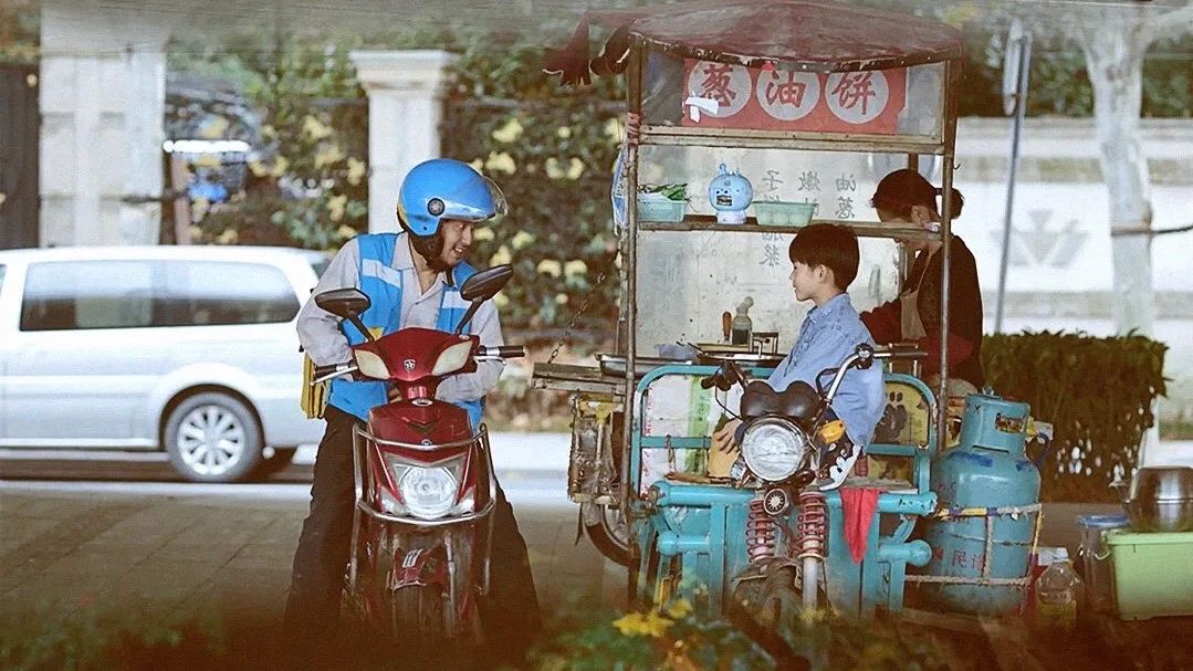 丈夫送外賣,妻子賣蔥油餅,兒子放學(xué)后就在攤位陪媽媽。
